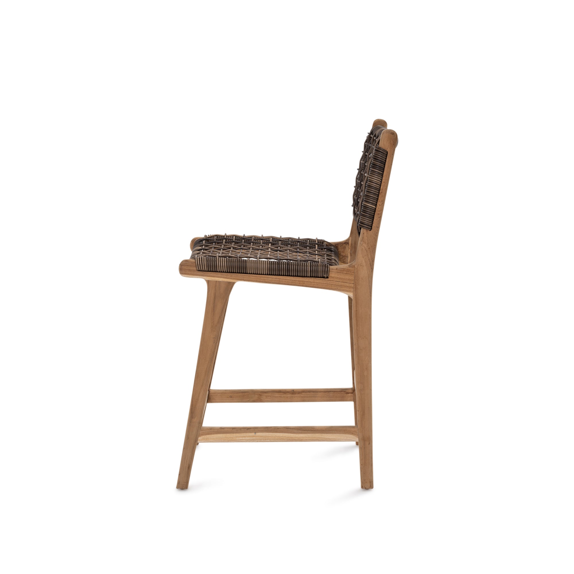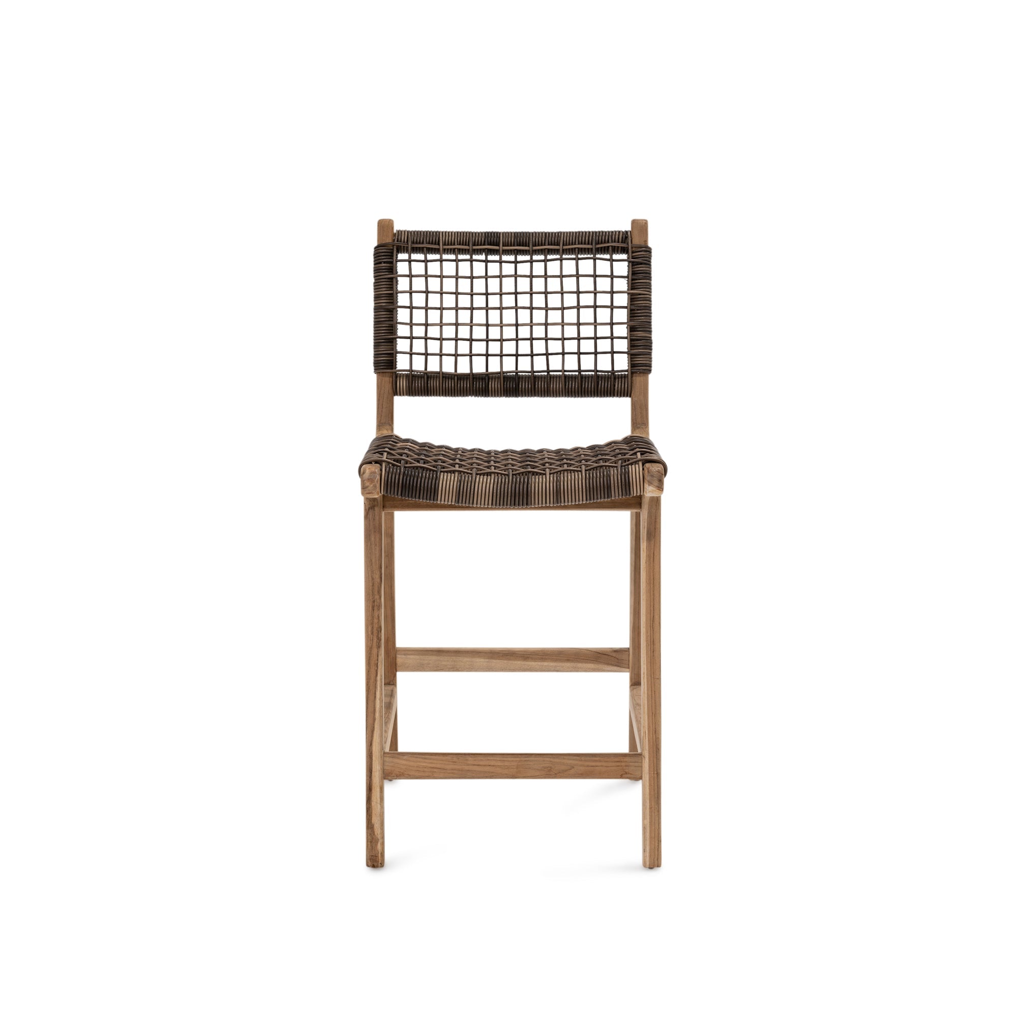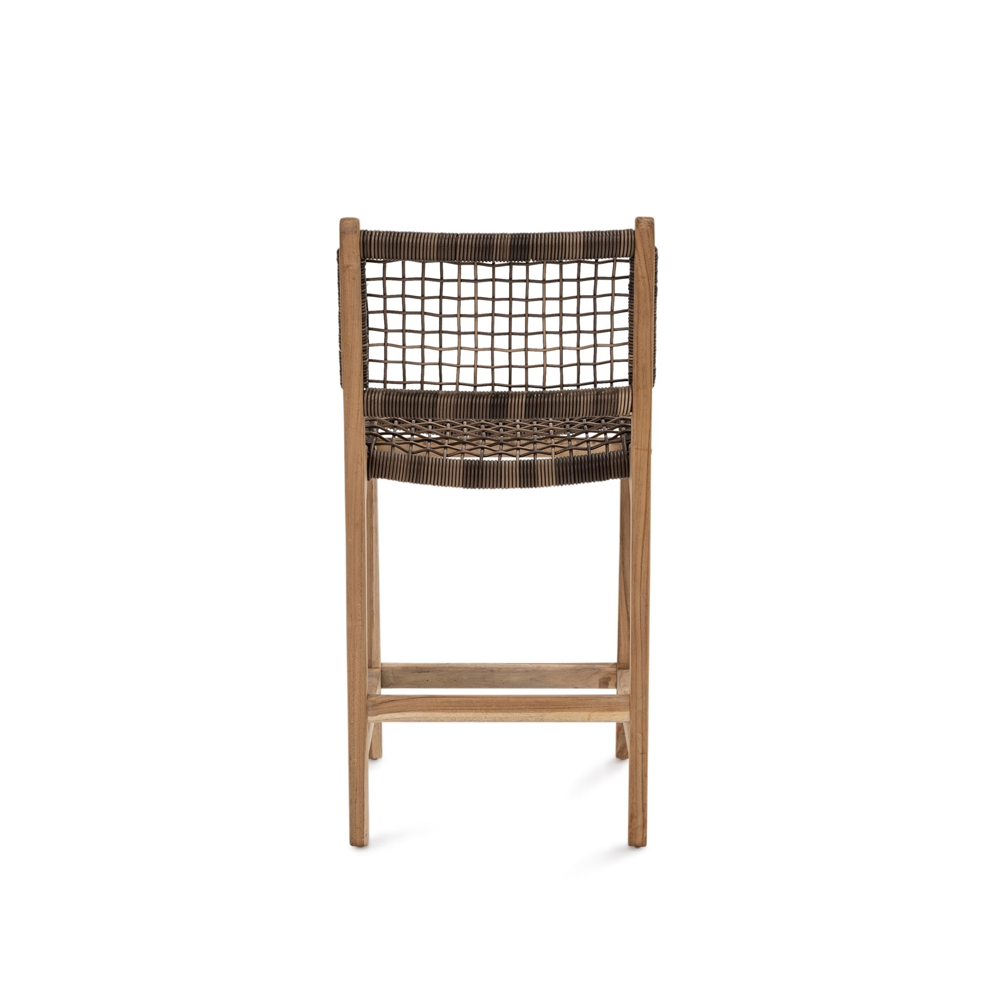 The Vogue Bar Chair, made from durable teak hardwood with a raw finish frame, complete with polyester braid rope weaved seat and backrest.