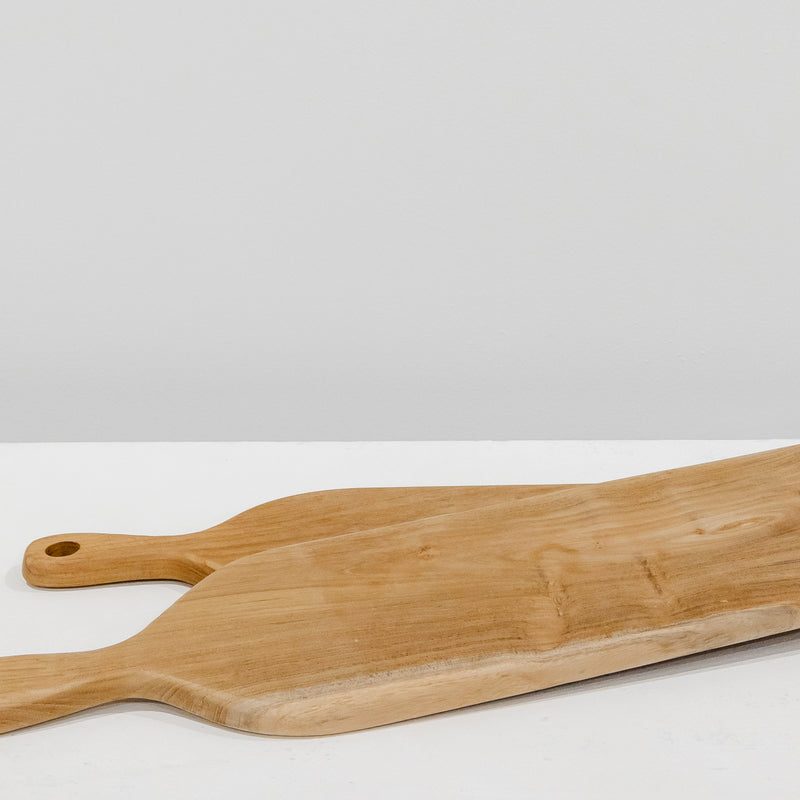 Perfect cutting board for preparing meals as well as a ready-to-go grazing platter for entertaining guests. Made from solid teak wood in a raw finish, perfect for any environment!